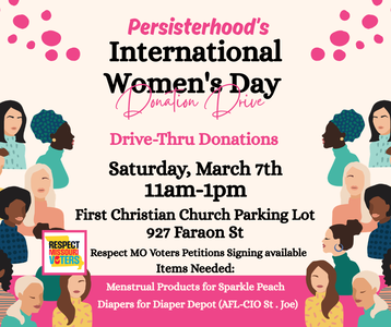"GIVE TO GAIN" for International Women's Day at Persisterhood's Drive-Thru Donation Collection & Petition Signing